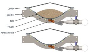Like the Tubulator, the air-supported belt conveyor has a totally enclosed design that protects the environment from dust emissions and reduces any material losses to a minium.
